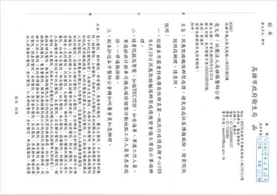 轉知高雄市政府衛生局-高市衛醫字第10933328200號函: