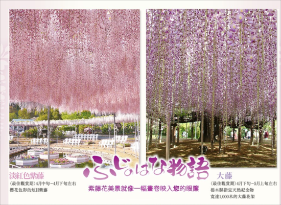 | 行程 | D1小港國際機場 —>成田機場 —>水戶偕樂園 —>大洗D2大洗 —>常陸海濱公園 —>大藤節~足利花卉公園 —> 伊香保 —>石段街散策 —>伊香保溫泉D3水澤觀音 —>草津湯? —>鬼押出園D4秩父羊山公園 —>龜戶天神社 —>台場 —>東京D5成田空港 —>高雄 |